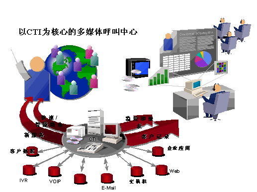 將企業(yè)現(xiàn)有的互聯(lián)網(wǎng)網(wǎng)頁服務(wù)與呼叫中心的電話服務(wù)相結(jié)合,在使企業(yè)有限的資源產(chǎn)生最大效益的同時,也極大地豐富了客戶服務(wù)的方式,形成綜合的客戶服務(wù)網(wǎng)絡(luò),滿足客戶的需求。優(yōu)利公司提供的融合呼叫中心和互聯(lián)網(wǎng)技術(shù)的解決方案與其它解決方案不同之處在于:其以CTI技術(shù)為核心的多媒體呼叫中心解決方案在設(shè)計(jì)開始,就將普通的語音電話與各種互聯(lián)網(wǎng)通信方式進(jìn)行統(tǒng)一處理,這一前瞻性設(shè)計(jì)思想,為呼叫中心與互聯(lián)網(wǎng)技術(shù)深層次結(jié)合奠定了基礎(chǔ)。