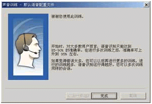 當(dāng)你15分鐘的訓(xùn)練全部結(jié)束后,將會(huì)看到如圖12所示的對(duì)話框,此時(shí)原來(lái)默認(rèn)的用戶配置文件將用剛才所收集的訓(xùn)練數(shù)據(jù)進(jìn)行更新,稍候片刻,你就會(huì)看到如圖13所示的對(duì)話框,告訴你語(yǔ)音訓(xùn)練已經(jīng)結(jié)束。