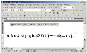 安裝成功后,你會(huì)從圖16中看到一個(gè)手寫圖標(biāo),接下來(lái)我們就可以使用手寫識(shí)別功能啦。首先,你必須在屏幕上選定書寫區(qū)域,可以是屏幕上類似于筆記本橫格紙的輸入板,也可以在屏幕上任意的位置書寫。我們可通過(guò)使用手寫輸入設(shè)備或移動(dòng)鼠標(biāo)墊上的鼠標(biāo)來(lái)形成文字,從而完成書寫,手寫文字將被自動(dòng)識(shí)別,并輸入到程序的插入點(diǎn)處。就像通常在紙張表面上一樣,你可以使用草書、印刷體或二者兼而有之地進(jìn)行書寫,書寫時(shí)不必每寫完一個(gè)字母后作停頓,可輸入整個(gè)單詞并在單詞之間留出空格。