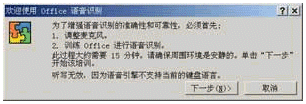 一般情況下,我們最好在語(yǔ)音識(shí)別功能安裝結(jié)束后立即按照系統(tǒng)提示單擊"下一步"對(duì)語(yǔ)音識(shí)別功能進(jìn)行訓(xùn)練,整個(gè)訓(xùn)練過(guò)程包括調(diào)整麥克風(fēng)和訓(xùn)練Office進(jìn)行語(yǔ)音識(shí)別兩部分(如圖3所示)。
