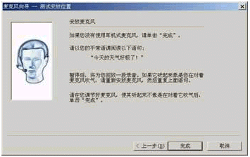 。2)現(xiàn)在你看到的是"安放麥克風(fēng)"對(duì)話框(如圖5所示),如果你沒(méi)有使用頭戴式麥克風(fēng),那么就可以點(diǎn)擊"完成"按鈕。