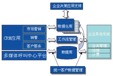 一個完整的客戶關系管理系統(tǒng)應該包括:多媒體呼叫中心系統(tǒng)、客戶關系管理應用、統(tǒng)一客戶數(shù)據(jù)管理系統(tǒng)和數(shù)據(jù)倉庫、工作流管理系統(tǒng)和企業(yè)決策應用支持系統(tǒng)。