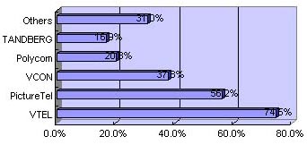 至于終端的品牌,賽迪顧問在對用戶、渠道經(jīng)銷商的調(diào)查中,發(fā)現(xiàn)有一半以上的被調(diào)查者知道VTEL和PictureTel,另外一個比較知名的品牌是VCON,如圖3所示。