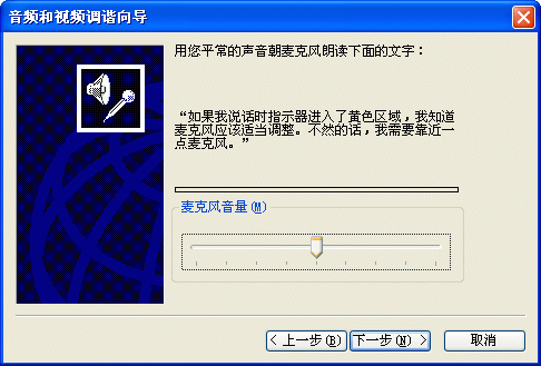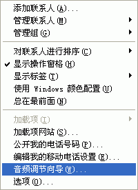 同樣,首先你應(yīng)該在MSN Messenger中調(diào)節(jié)你的音頻和視頻設(shè)備。選擇工具->音頻調(diào)節(jié)向?qū)?圖8)就會彈出“音頻和視頻調(diào)諧向?qū)А钡拇翱?圖9),請根據(jù)這個(gè)向?qū)У奶崾荆徊揭徊竭M(jìn)行測試和調(diào)節(jié)。