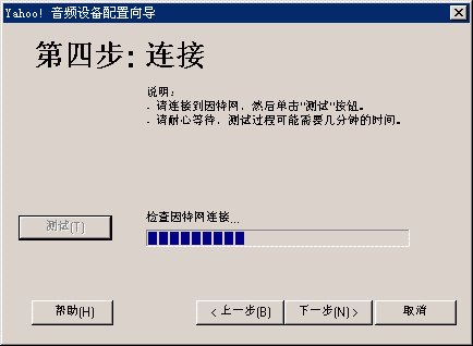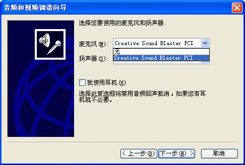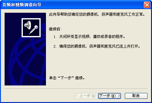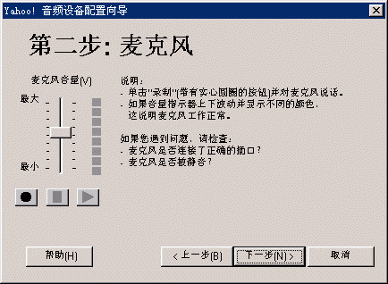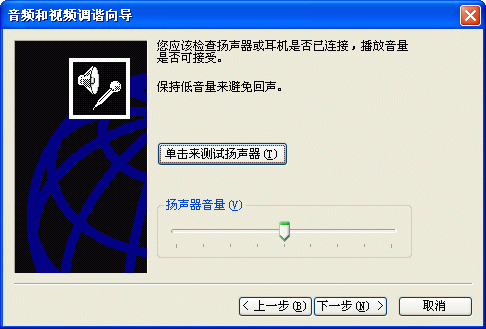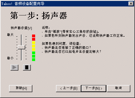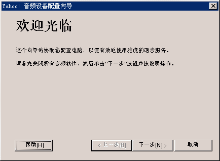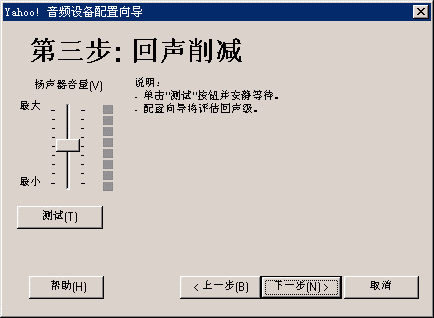 選擇幫助->音頻設(shè)備配置向?qū)?圖2),會彈出“音頻設(shè)備配置向?qū)А贝翱?圖3),這個(gè)向?qū)䦷椭銓P(yáng)聲器、麥克風(fēng)、回音、網(wǎng)絡(luò)連接等項(xiàng)目進(jìn)行標(biāo)準(zhǔn)的測試和設(shè)置。
