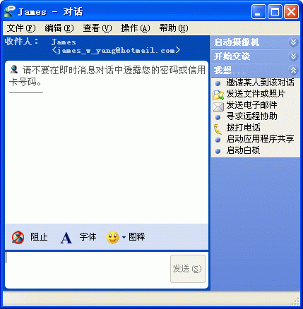 在對你的音、視頻設(shè)備檢查無誤、調(diào)試完畢后,恭喜你!你可以馬上給你的朋友打可視電話了。點(diǎn)擊在線好友的Yahoo! ID,就會彈出一個(gè)訊息發(fā)送框(圖6),在菜單欄下面的幾個(gè)按鈕中有“視頻”和“語音”兩個(gè)按鈕。沒錯(cuò)!就是它們了,點(diǎn)吧!點(diǎn)擊“視頻”按鈕后彈出了剛才的“我的即時(shí)影像”窗口;點(diǎn)擊“語音”按鈕后,訊息發(fā)送框中間部分會多出一條語音顯示和控制的狀態(tài)欄。(見圖7)對方只需右鍵單擊朋友列表中你的Yahoo! ID,并選擇“觀看即時(shí)影像”即可看到你的影像并同時(shí)聽到你的聲音。OK,開始你們愉快的交流吧!:)