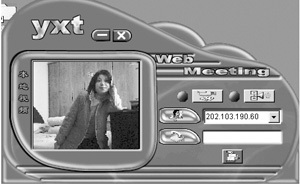 視頻目錄服務(wù)器的IP地址已在主界面中顯示,如“202.103.190.60”。你只需點(diǎn)擊前面有兩個(gè)人頭像的“連接目錄服務(wù)器”按鈕,就可以登錄視頻目錄服務(wù)器。這時(shí)你可看到所有登錄者的信息。如果你想同哪位朋友聊天,你可用鼠標(biāo)雙擊你想與之聊天的朋友的信息,WebMeeting會(huì)馬上為你進(jìn)行聯(lián)系,接通后響起一陣電話鈴聲并會(huì)彈出一個(gè)名為“遠(yuǎn)程視頻”的窗口,對(duì)方的視頻畫面會(huì)顯示在其中。用它來(lái)跟千里之外的朋友進(jìn)行溝通真是方便,筆者就嘗試用它來(lái)進(jìn)行QQ朋友“相面”;舉行遠(yuǎn)程朋友聚會(huì);親身示范教別人學(xué)習(xí)電腦使用及解決電腦故障;了解異地商品優(yōu)劣;欣賞異地風(fēng)光(將攝像頭對(duì)準(zhǔn)大街);甚至還可來(lái)個(gè)重要事件現(xiàn)場(chǎng)直播等等。