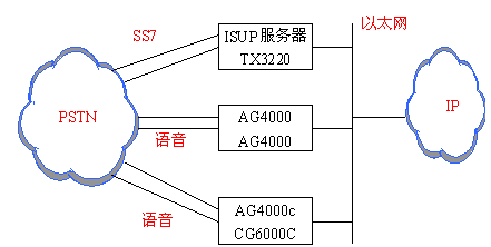 系統(tǒng)中ISUP服務(wù)器通過(guò)SS7鏈路和PSTN連接,通過(guò)IP網(wǎng)絡(luò)和語(yǔ)音處理機(jī)連接,這兩個(gè)連接傳送的是信令信號(hào)。語(yǔ)音處理機(jī)通過(guò)話(huà)路和PSTN連接,這個(gè)連接傳輸?shù)氖钦Z(yǔ)音。
