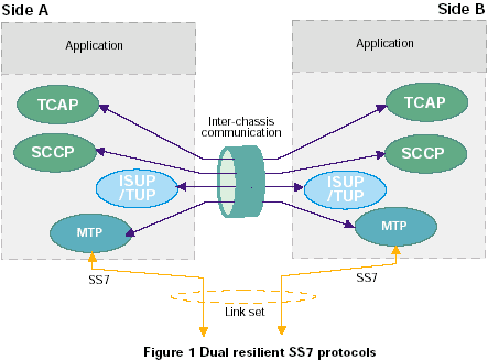 Socket Interface)軟件完成。這種組合提供一個SS7接口,協(xié)議處理分散在兩個物理上獨(dú)立的機(jī)箱中,而在網(wǎng)絡(luò)上象一個整體。