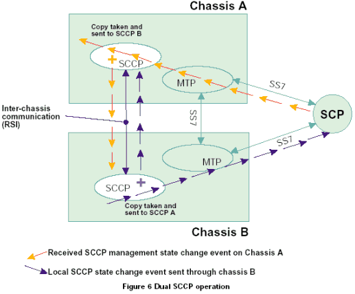 SCCP通過支持可尋址的子系統(tǒng)概念提高了消息傳遞部分(MTP)的路由能力。所有已知的本地和遠(yuǎn)端子系統(tǒng)的路由可用性(允許狀態(tài)或禁止?fàn)顟B(tài))在SCCP層中進(jìn)行管理。在一個由N個SCCP層(或多個SCCP的實(shí)例)組成作為同一節(jié)點(diǎn)編碼的系統(tǒng)中,用戶應(yīng)用程序和遠(yuǎn)端節(jié)點(diǎn)需要能夠通過任何SCCP實(shí)例交換SCCP數(shù)據(jù)消息,并且希望每個SCCP中的路由表都是相同的。為了達(dá)到這個目的,需要使用廣播機(jī)制增強(qiáng)SCCP層,這種機(jī)制將本地或遠(yuǎn)端的路由狀態(tài)的任何改變發(fā)送到廣播任務(wù)。廣播任務(wù)負(fù)責(zé)將路由變化傳送到N-1(其他)SCCP實(shí)例。在雙系統(tǒng)中,廣播任務(wù)只是另一個SCCP層,這兩層使用基于消息的API進(jìn)行通信。在一個雙機(jī)箱/子機(jī)架環(huán)境中,這些消息可以由RSI和TCP/IP組合來傳遞。