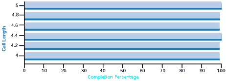 如圖2所示,BHCC值降到99%以下的轉(zhuǎn)換點是每4.0秒產(chǎn)生一個呼叫。在呼叫間隔是4.0秒時,BHCC值是99.12%,小于需要的5秒間隔,達到了企業(yè)級系統(tǒng)可接受的速率。